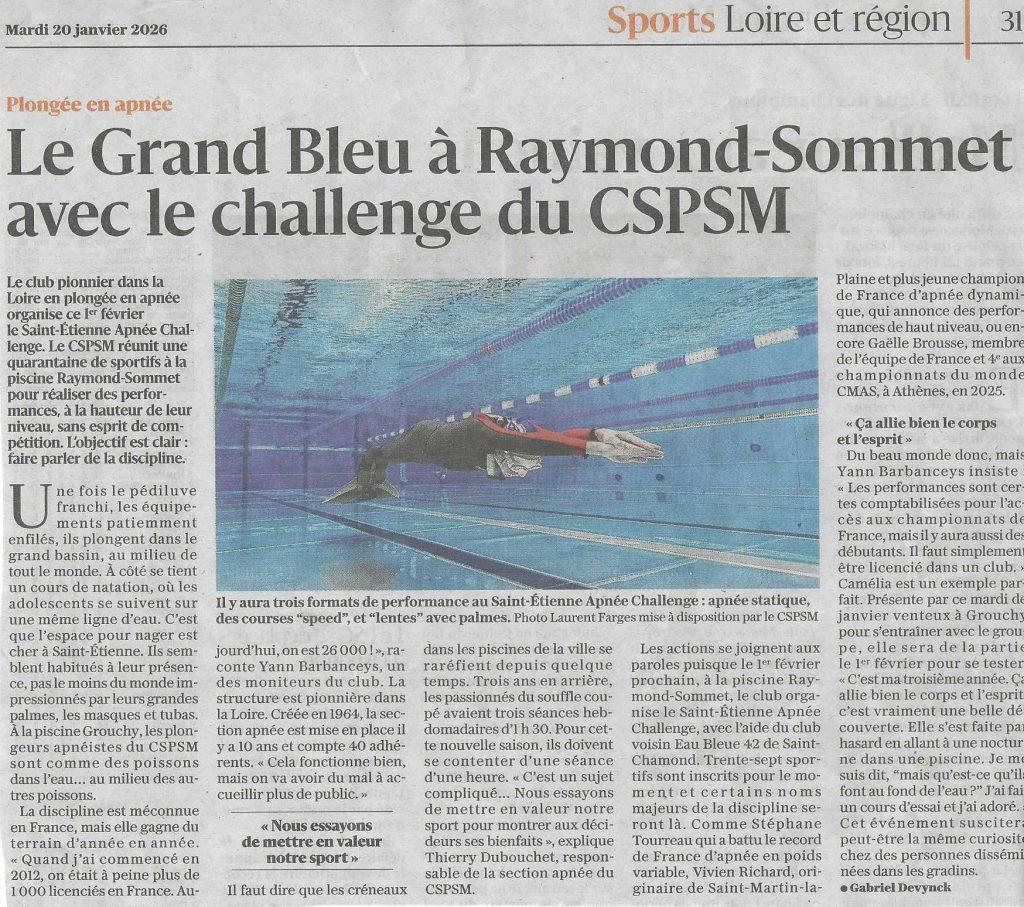 Apnée – article dans le journal Le Progrès